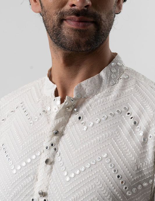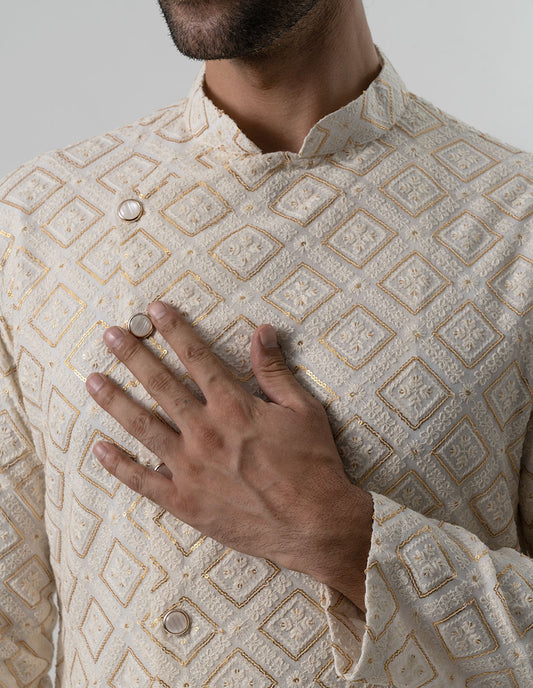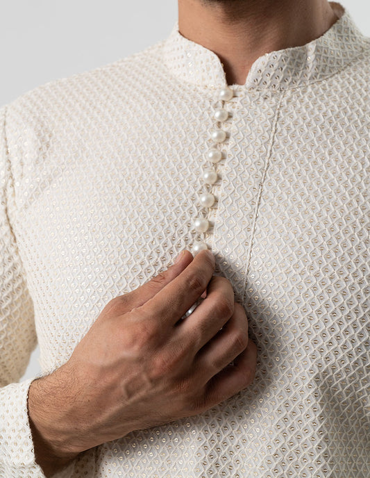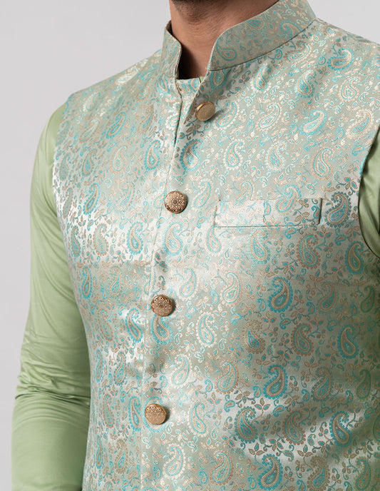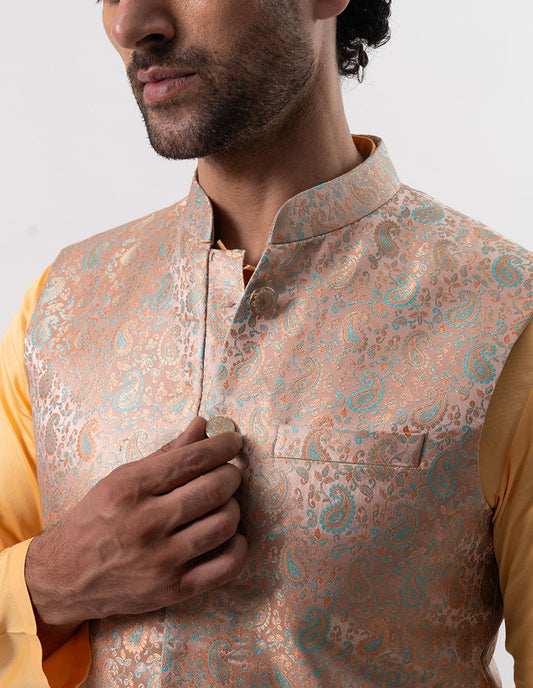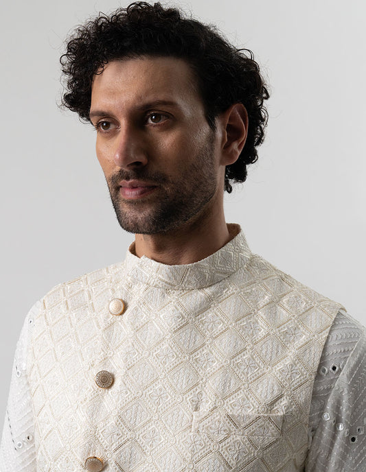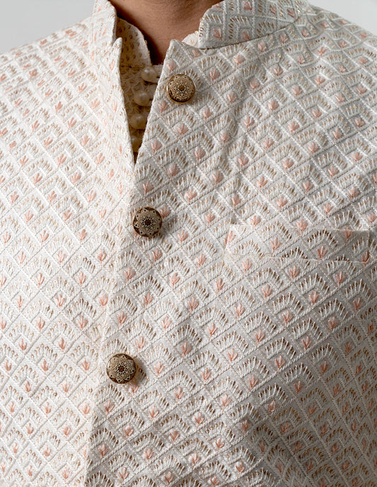 Pastel solids, luxe ivory kurtas, brocade/jacquard Nehru jackets and shoe-friendly trousers—crafted for comfort and polish from morning puja to evening soirées.