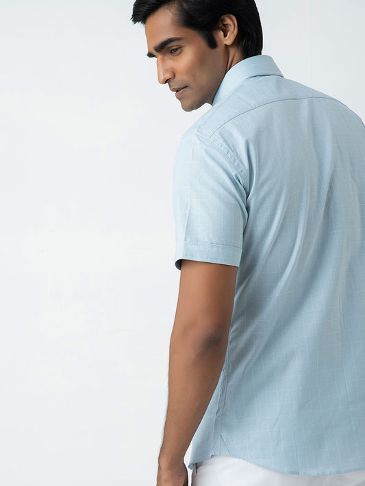 ICE BLUE CHECK STRETCH S/S SHIRT
