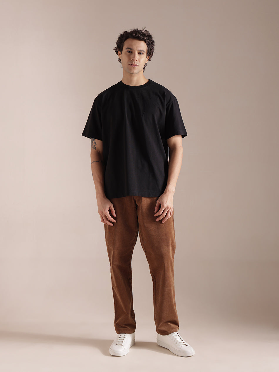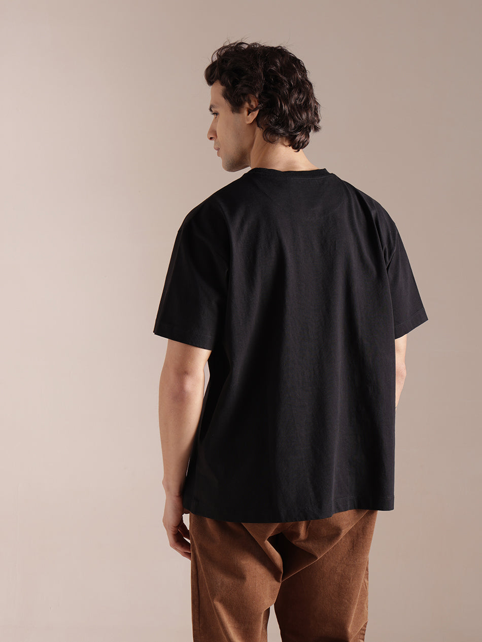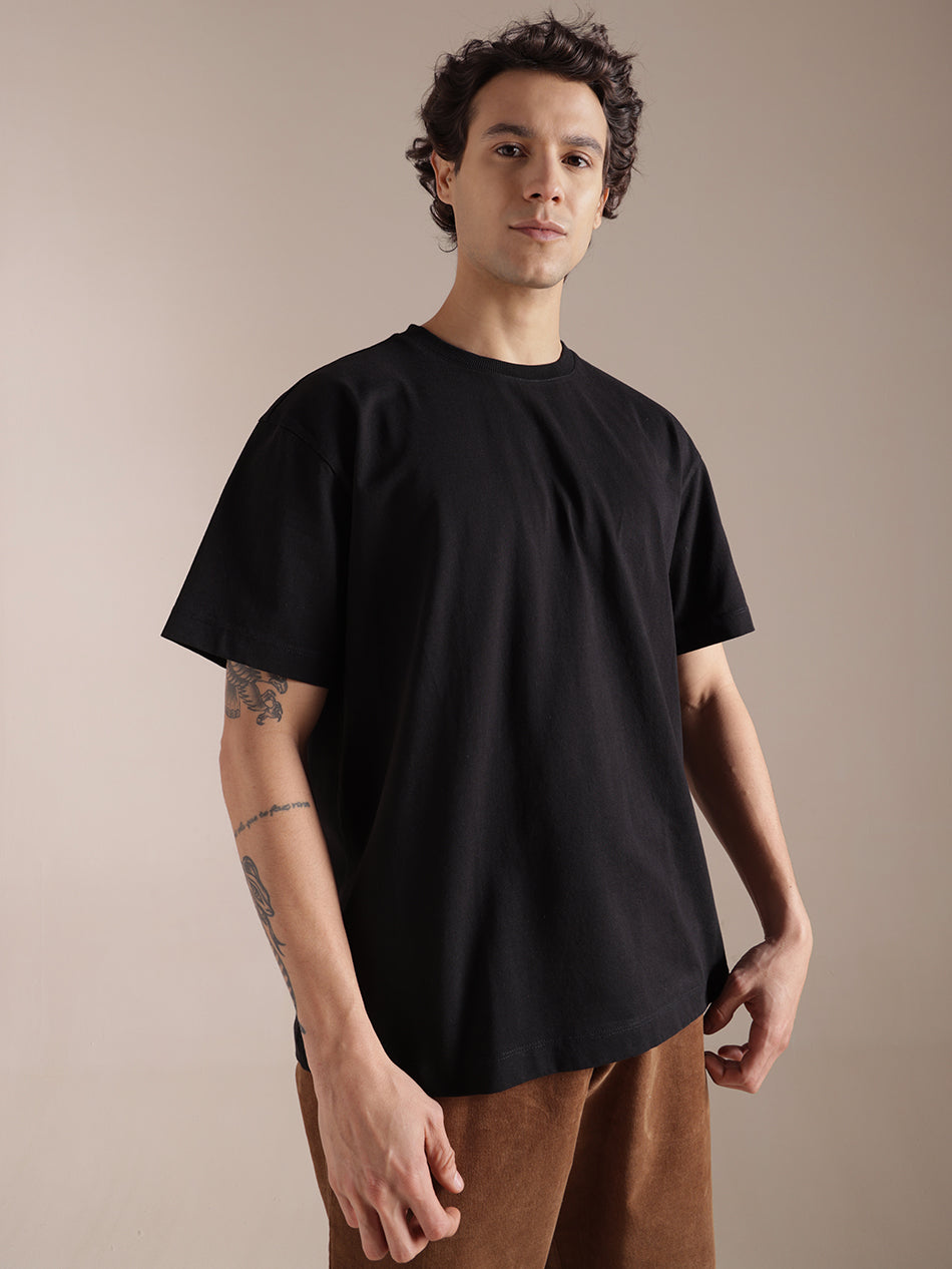 Elevate your everyday essentials with the Black Horizon Heavy Tee. Crafted from premium 100% cotton single jersey fabric, this 220 GSM relaxed-fit t-shirt ensures exceptional comfort and durability. The rich black shade pairs effortlessly with any wardrobe, making it your go-to for versatile styling. Perfect for casual outings or layering under jackets, this t-shirt redefines premium basics for men. The model is 6'0" tall, wearing size M.