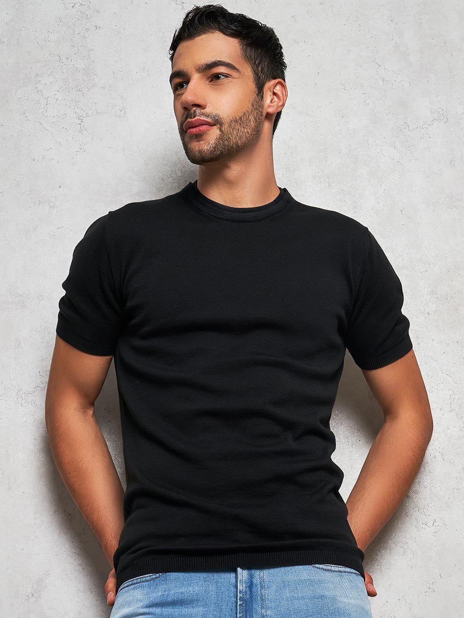 A casual everyday essential, this crew neck tee is made from soft 100% Supima Cotton with a fine textured rib detail at neck.Cut for a relaxed look,it has short sleeves and stretch rib at sleeve opening and bottom.