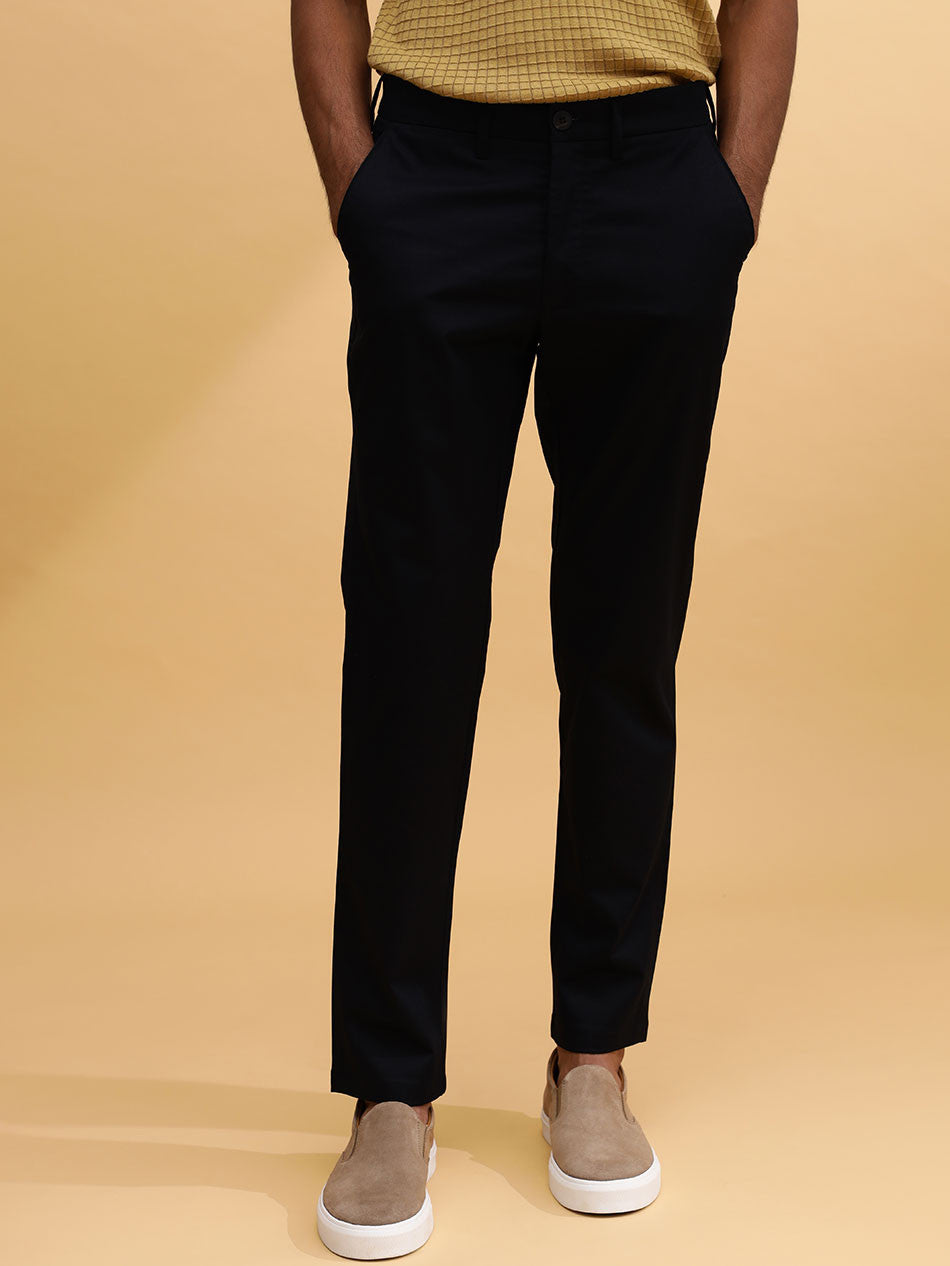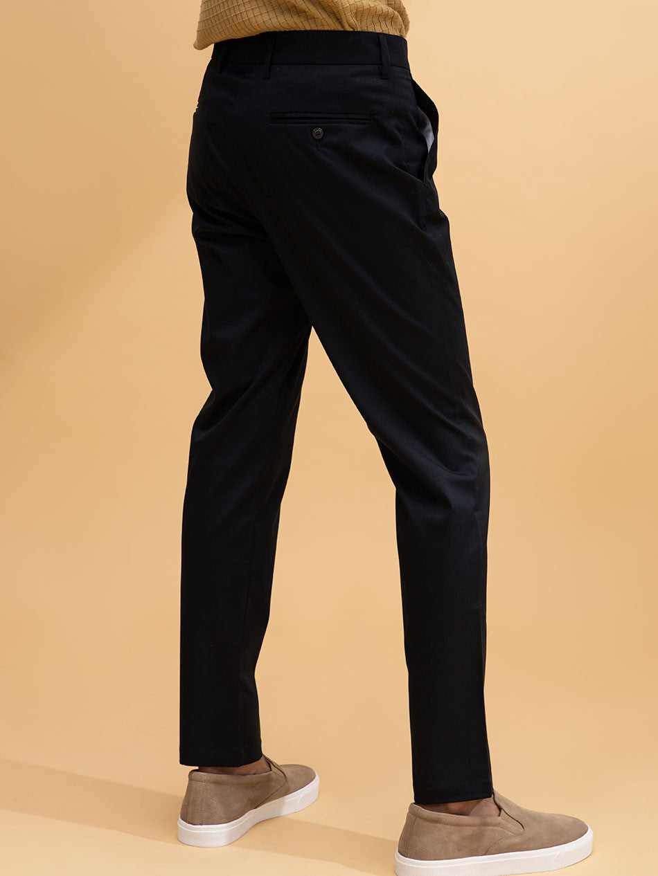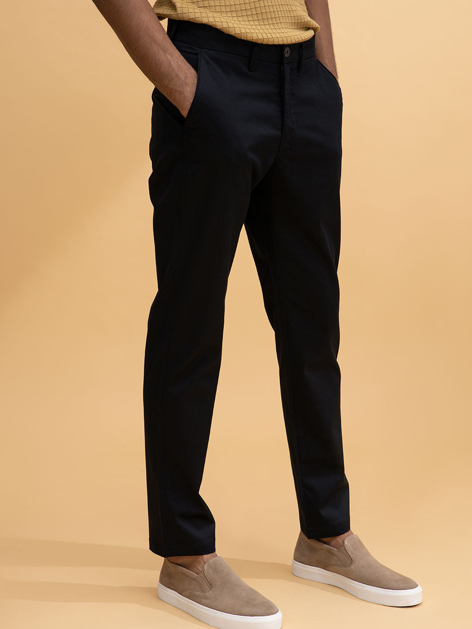 A season-less essential, this flat-front twill chino trousers in a classic black tone is an indispensable piece in a modern man's wardrobe.