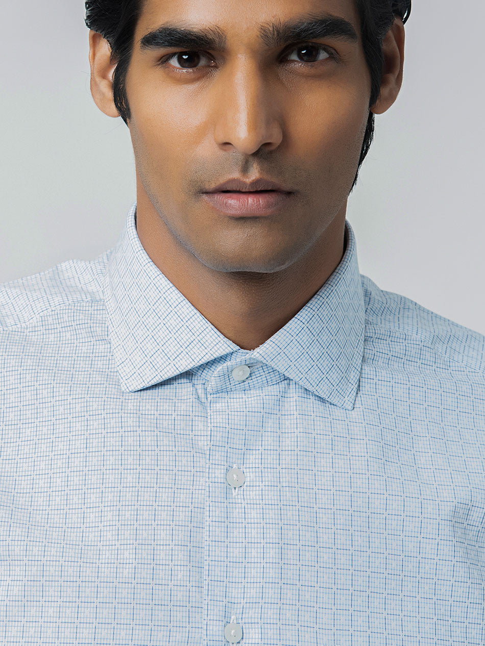Cut to a slim fit,this one has been designed with a moderate cutaway collar round cuffs.