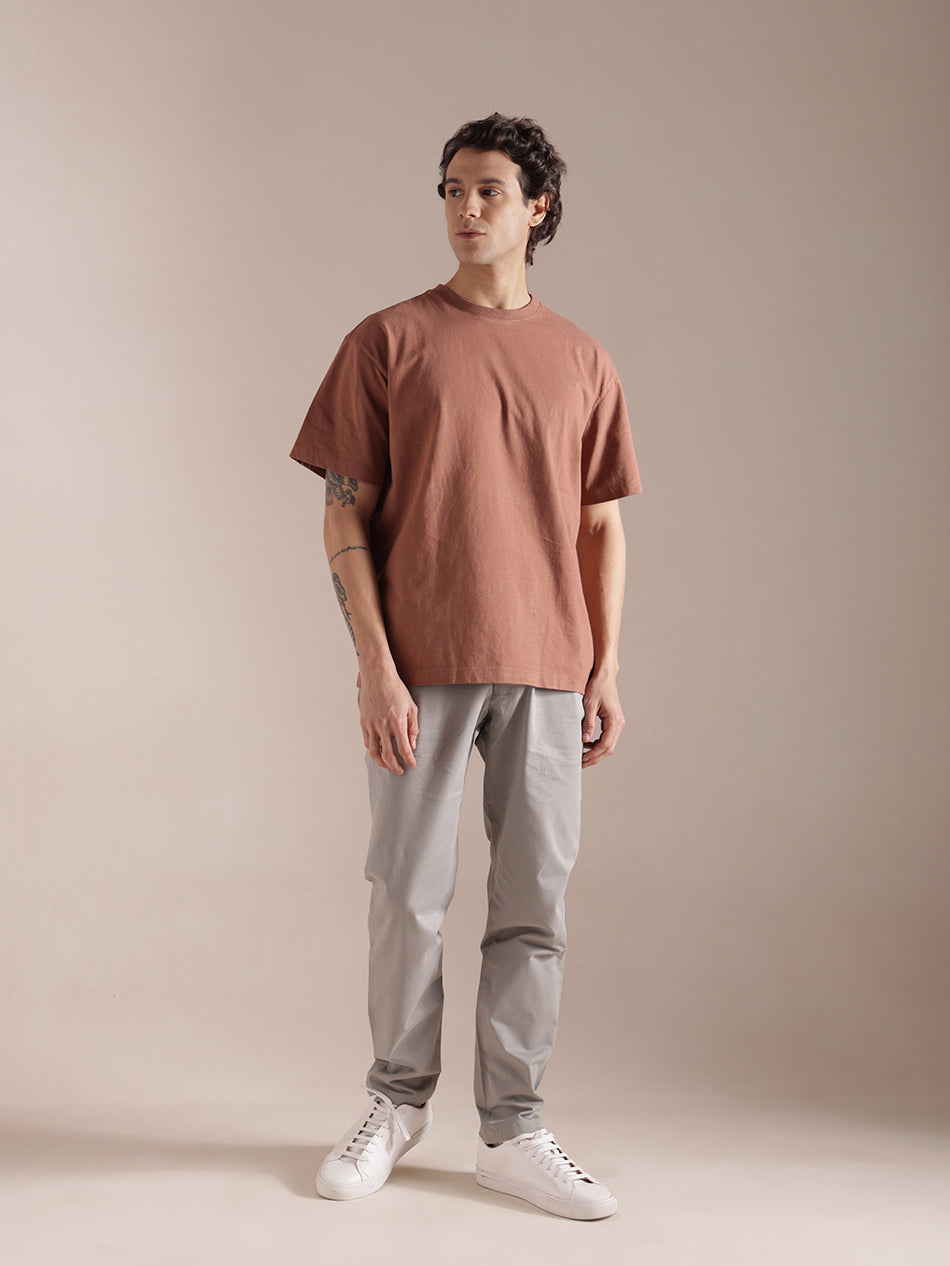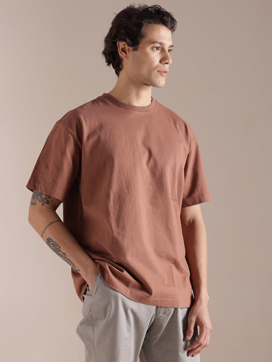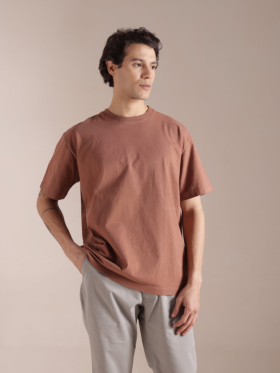 Add a touch of earthy elegance to your wardrobe with the Earth Brown Heavy Tee. This relaxed-fit t-shirt is made from premium 100% cotton single jersey fabric, weighing 220 GSM for lasting quality and comfort. The deep brown shade exudes timeless style, perfect for layering or standalone wear. The model is 6'0" tall, wearing size M.