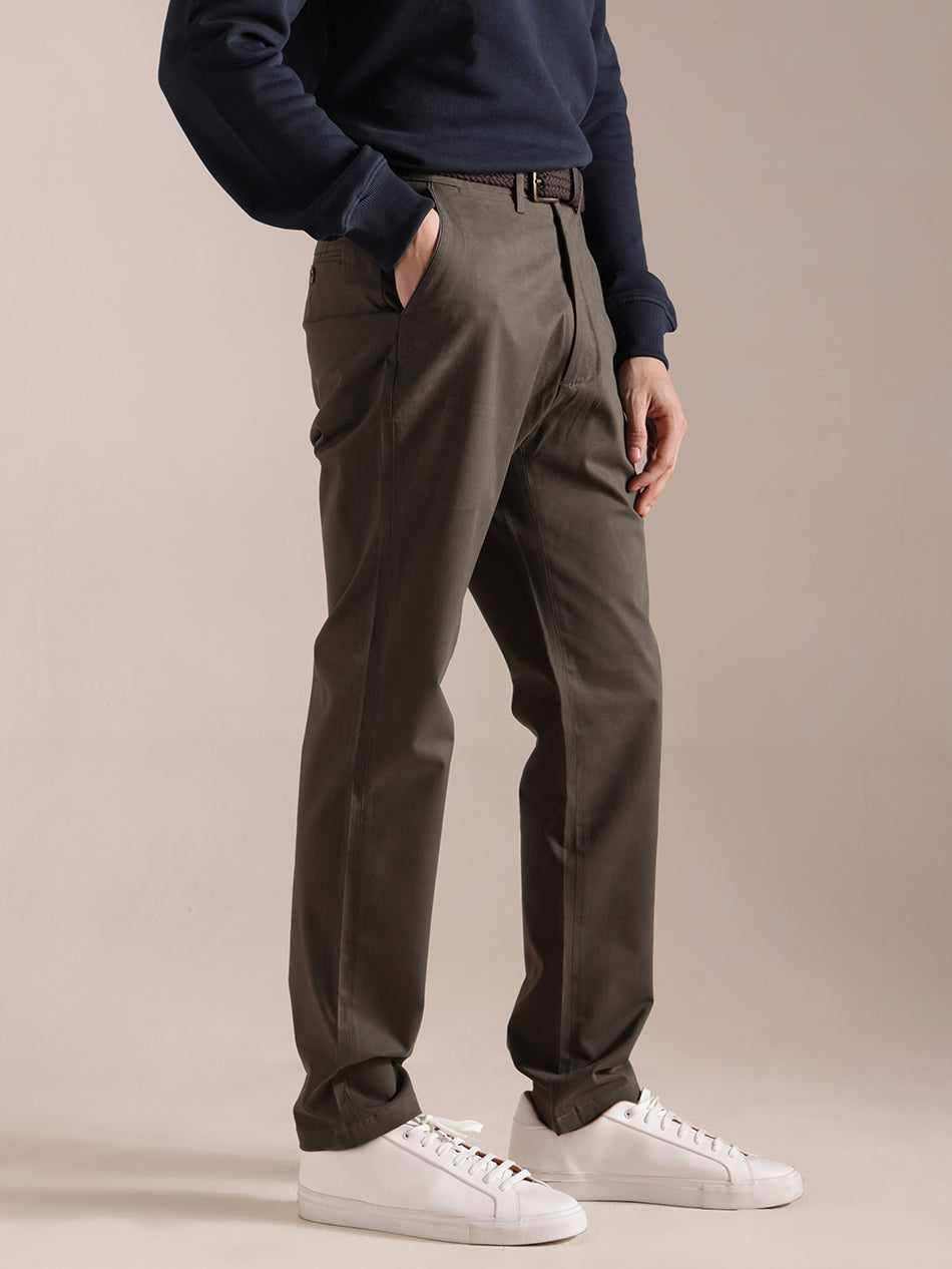 Inspired by the relentless pursuit of excellence. The Cavalry Green Chinos embody strength and sophistication with their rich, military-inspired hue. Crafted from the finest cotton twill, these high-rise, regular-fit trousers command attention wherever you go. Model is 6 ft tall, wearing size 31.