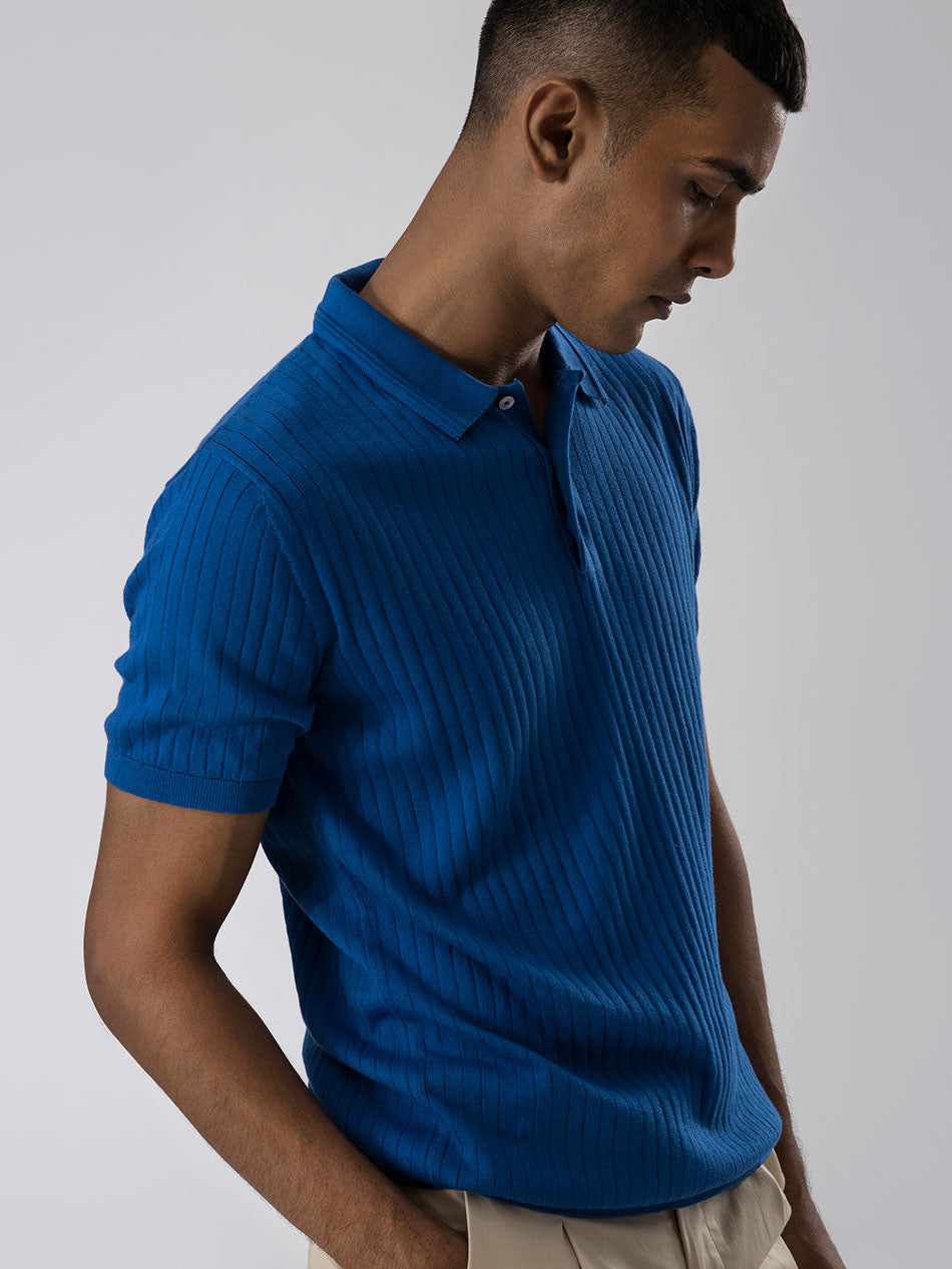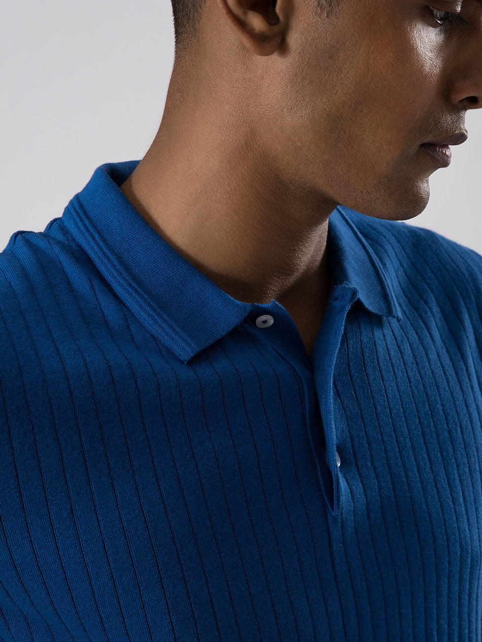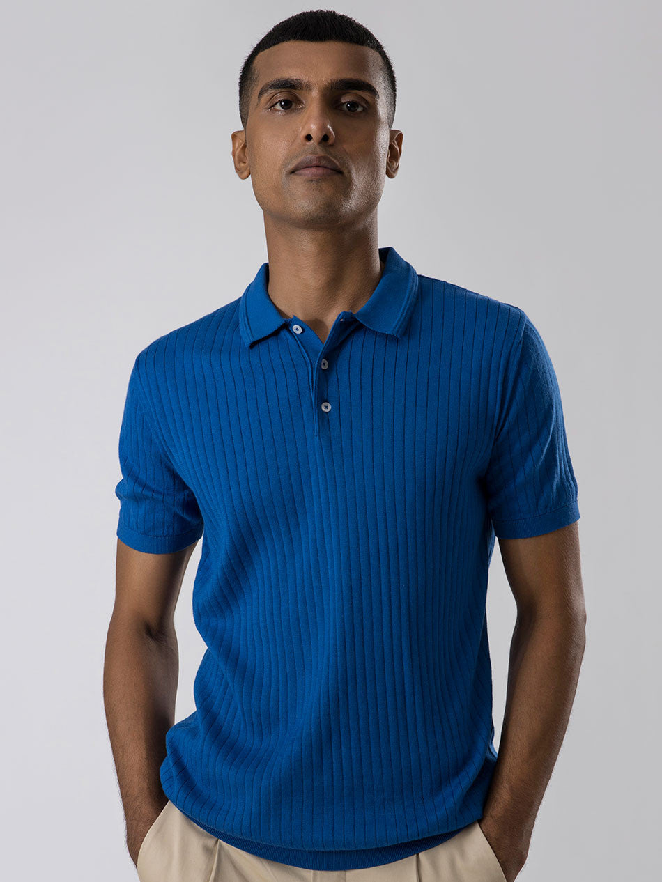 Knitted to a slim fit in 100% Supima cotton, it features a fine striped design is completed with a flat knit collar with a stripe detail.