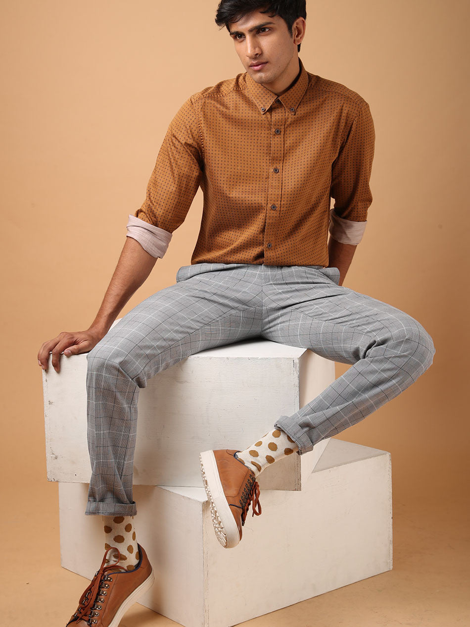 The wood textured buttons adds to the earthy appeal of the shirt. We recommend pairing this with a navy textured pants and suede loafers to make a dapper statement.