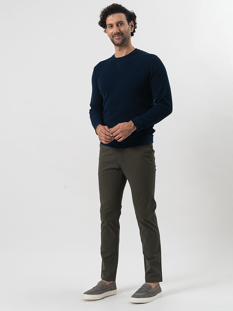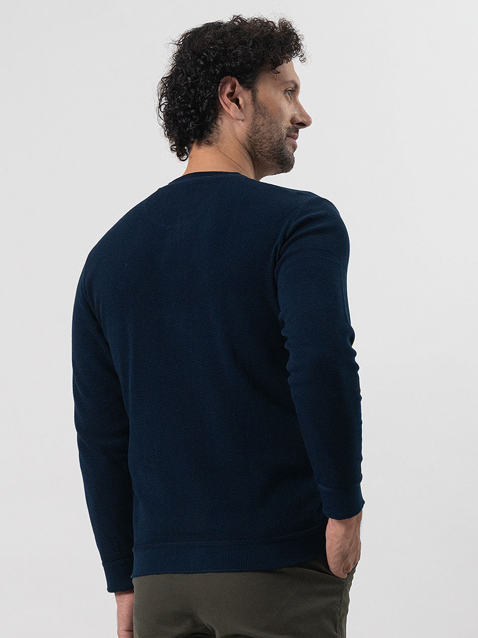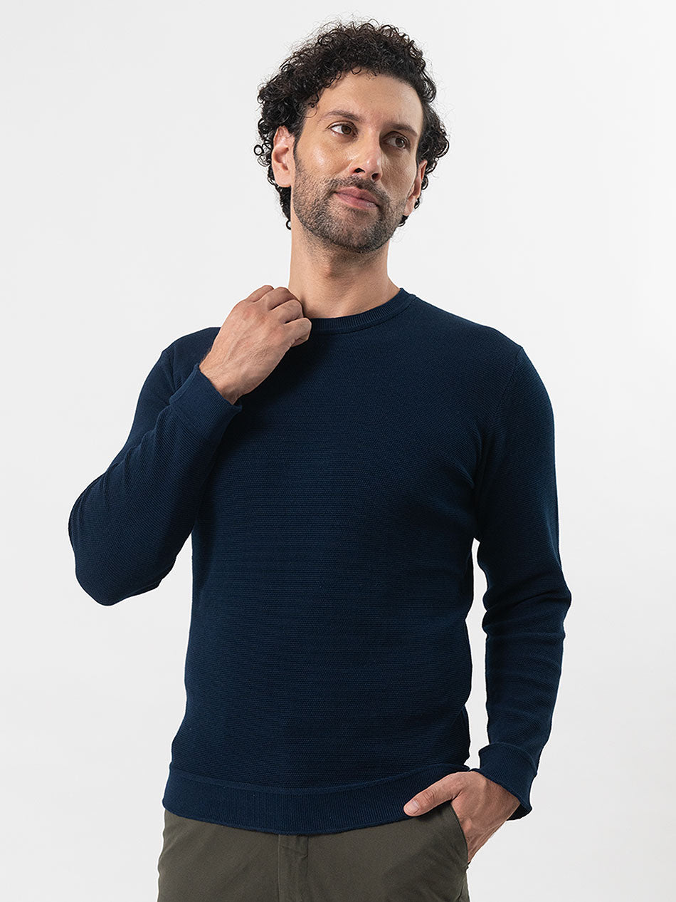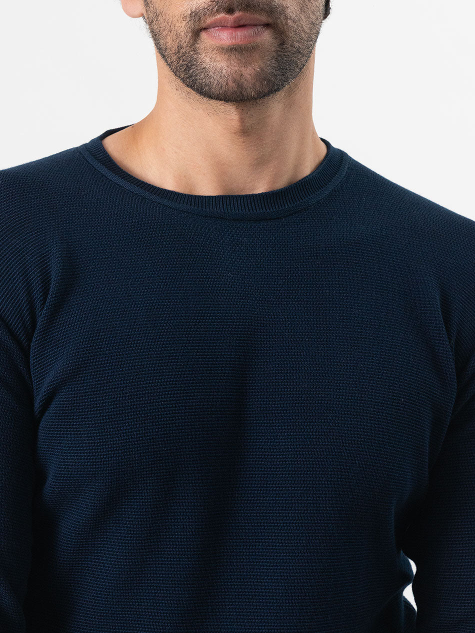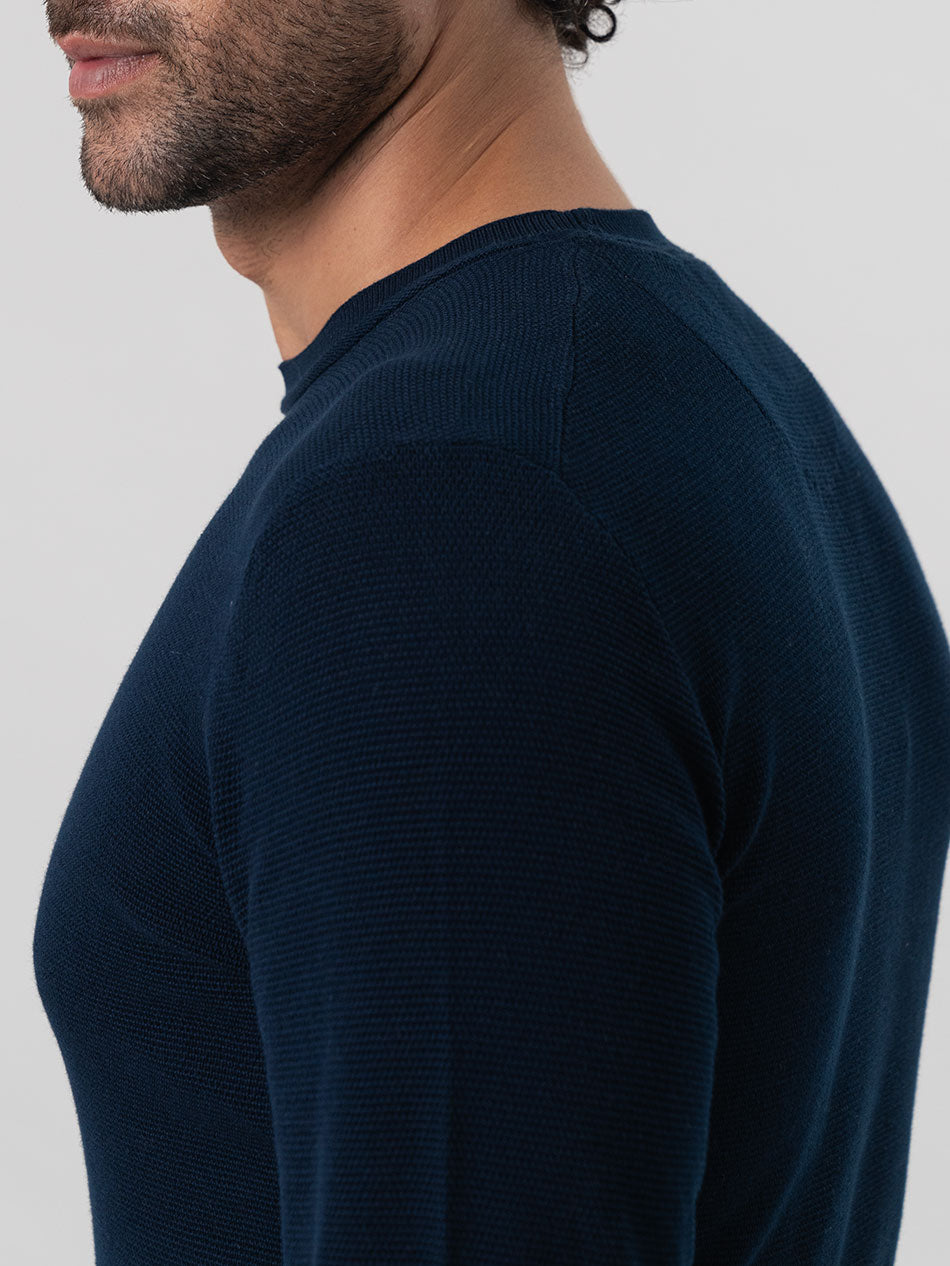 Experience understated elegance with our Navy Men's Long-Sleeved Knitwear. Made from premium supima cotton, our long-sleeved tee exudes sophistication in its classic hue. Elevate your style with timeless sophistication. Shop now!