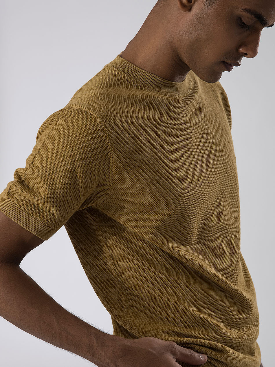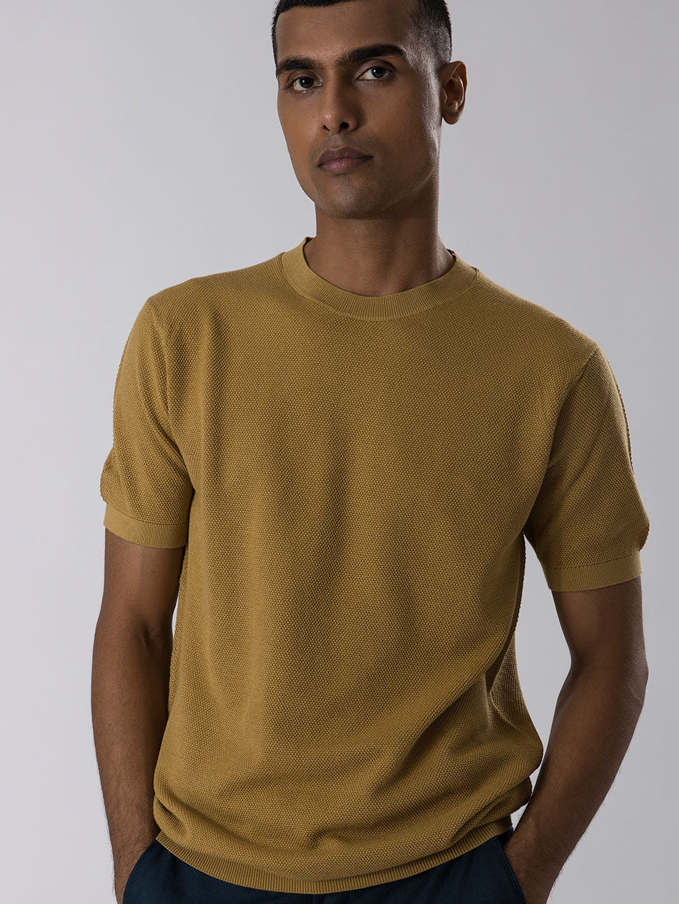 Crafted from the finest Supima cotton, our off duty tees in dune color boasts unparalleled softness,lightness comfort. These have been knitted with a luxurious texture with superior craftsmanship comes in a fit which flatters every body type.