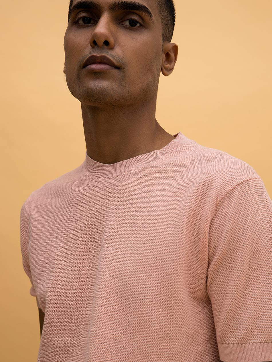 Crafted from the finest Supima cotton, our off duty tee in pink boasts unparalleled softness,lightness comfort. These have been knitted with a luxurious texture a superior construction quality comes in a fit which flatters every body type.