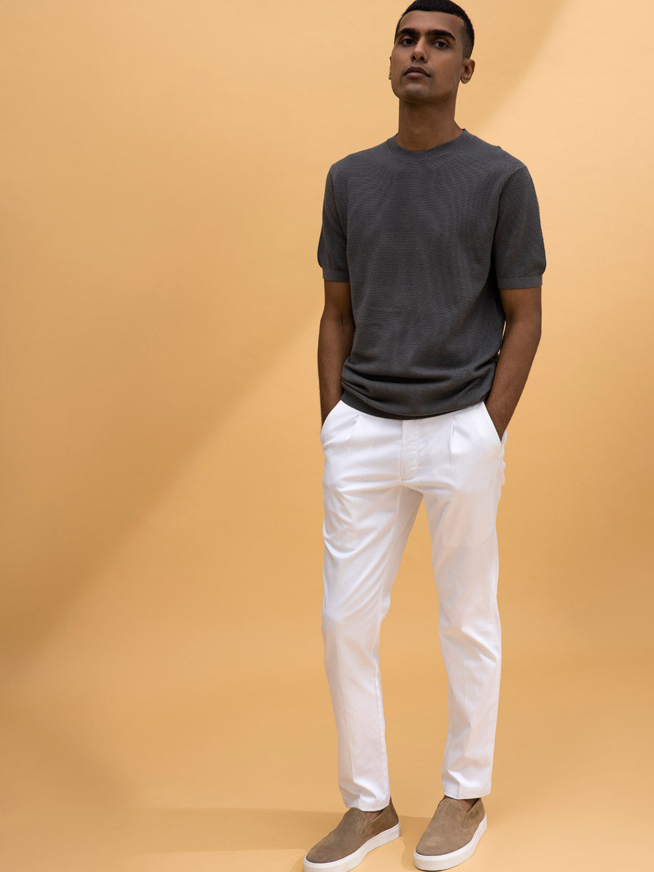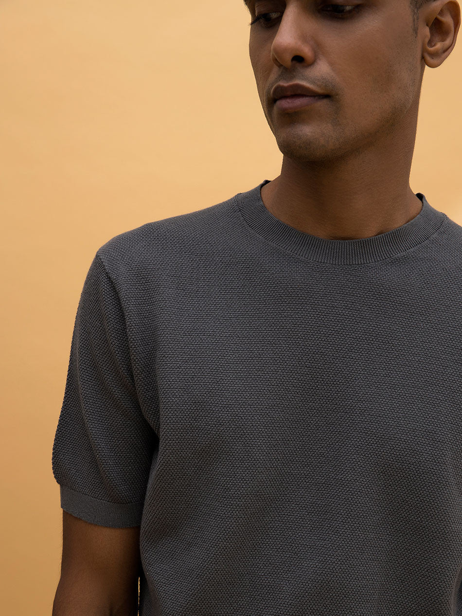 Crafted from the finest Supima cotton, our off duty tees in slate color boasts unparalleled softness,lightness comfort. These have been knitted with a luxurious texture with superior craftsmanship comes in a fit which flatters every body type.
