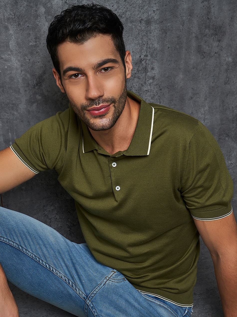 This fine-knit polo shirt is made from 100% Supima cotton. A lightweight style, it is a regular fit with a structured rib collar, ribbed cuffs hem and a partial button fastening.