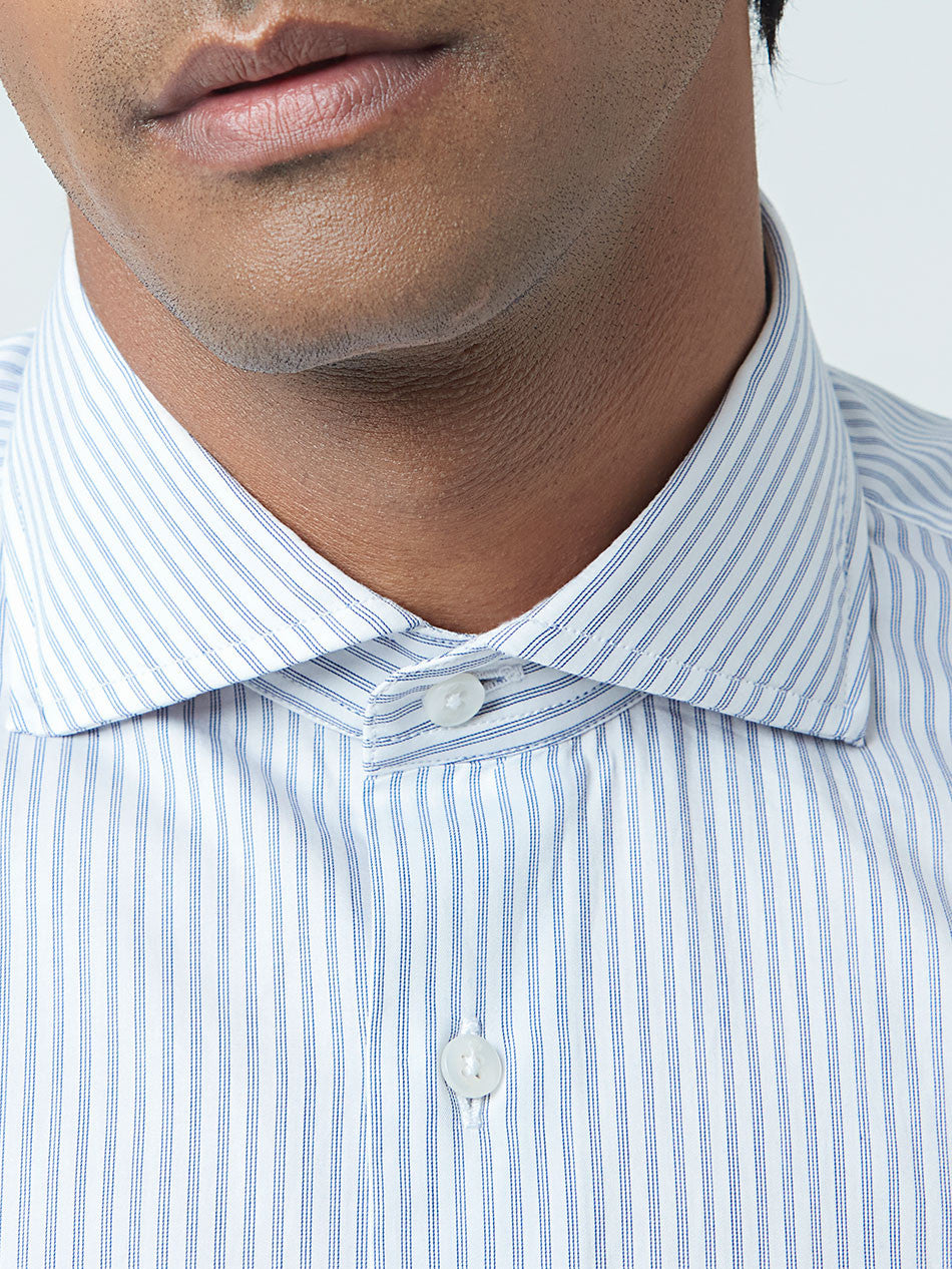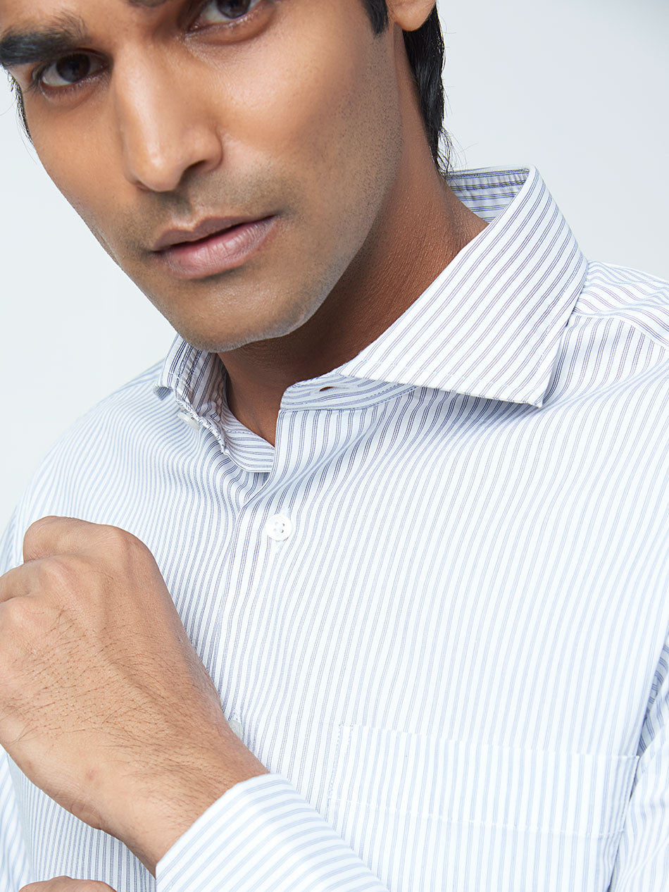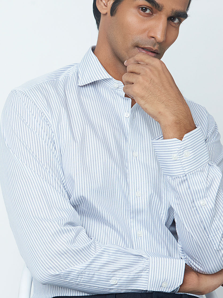 Elevate your workwear aesthetics with our Super 90s Twill Striped Shirt which has been crafted in a fine 90's count cotton yarns. At just 86 gsm, the shirt feels supple allows superior comfort a luxury feel